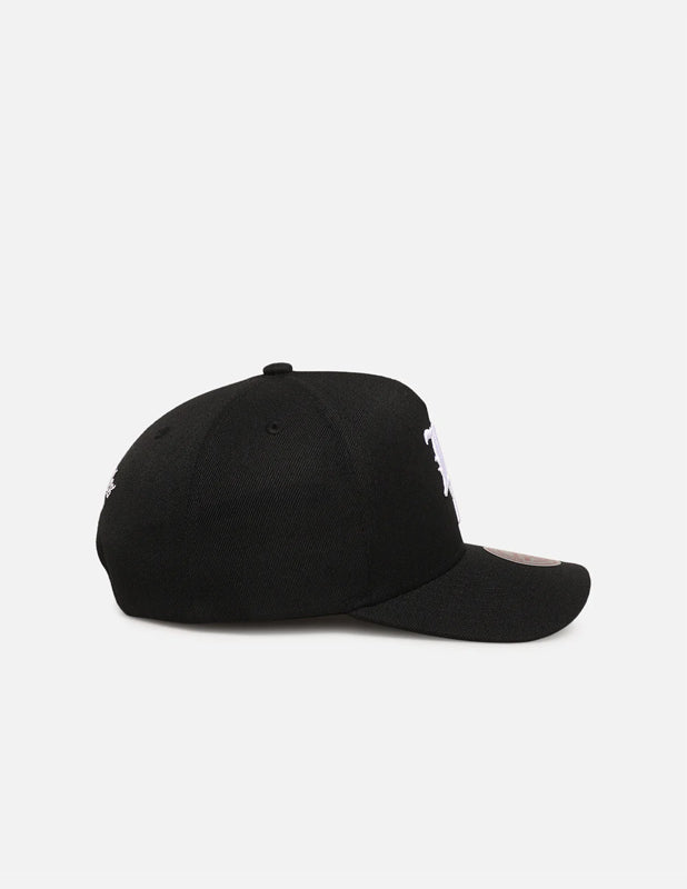 Show your Lakers pride with the Official Los Angeles Lakers Gothic Letter Pro Pinch Snapback Cap by Mitchell & Ness. This black snapback features a bold gothic letter design, offering a stylish way to support your team. Crafted for comfort and durability, it’s perfect for everyday wear or game day.